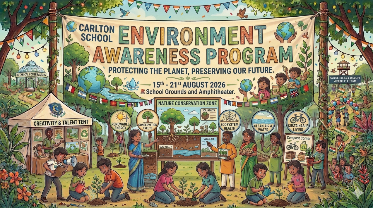 Students and teachers at Carlton School organized an environment awareness program that included discussions, poster-making activities, and a campus cleanliness drive. The initiative aimed to educate students about environmental protection and sustainable practices.